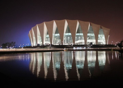 上海东方体育中心(Oriental Sports Center),别名“海上王冠”,原名上海水上竞技中心,位于上海浦东新区耀龙路前滩地块,以水上项目为主的综合性体育场馆。共包括一座1.5万人的主体育馆,5千人的游泳馆和5千人的室外跳水池,总投资约20亿元人民币,于2010年底竣工。
